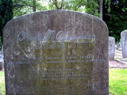 In the CMA book, there appears a photograph of his memorial in the Lodge Hill Cemetery, Birmingham.