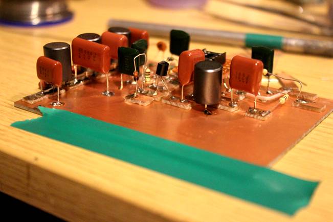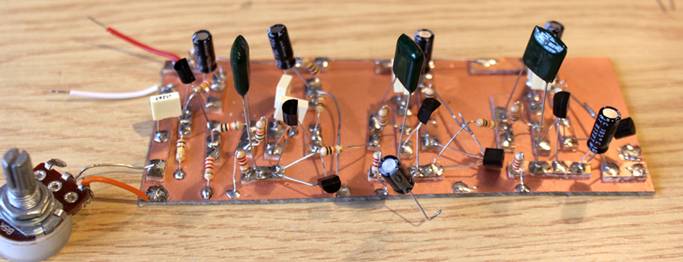 To prove this, we built another, single stage circuit on a re-cycled bit of board…
