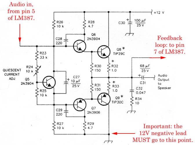 The final part of the circuit is a power amplifier to drive a loudspeaker: