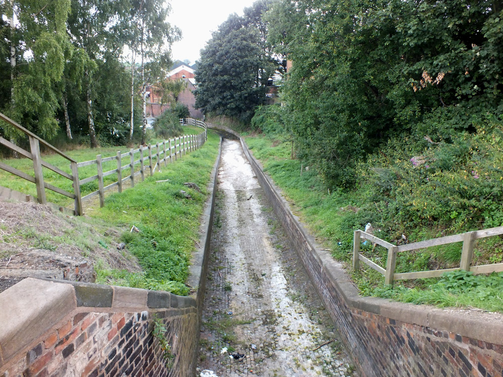 … and again in February 2014. The water flows into the canal, albeit this time in an uncontrolled fashion. Still, as there is twenty-odd miles of the same level into which it can flow, there would be little problem? And in any case, the canals themselves were always provided with overflows, and sluices which could be opened & allow excess water to drain into nearby rivers; for canals – and later railways – always tended to follow rivers, as their gradients were so gentle. As ever, the efforts of Man took the easy way out, and followed the paths already engraved in the landscape by the Mighty Workings of Nature.
