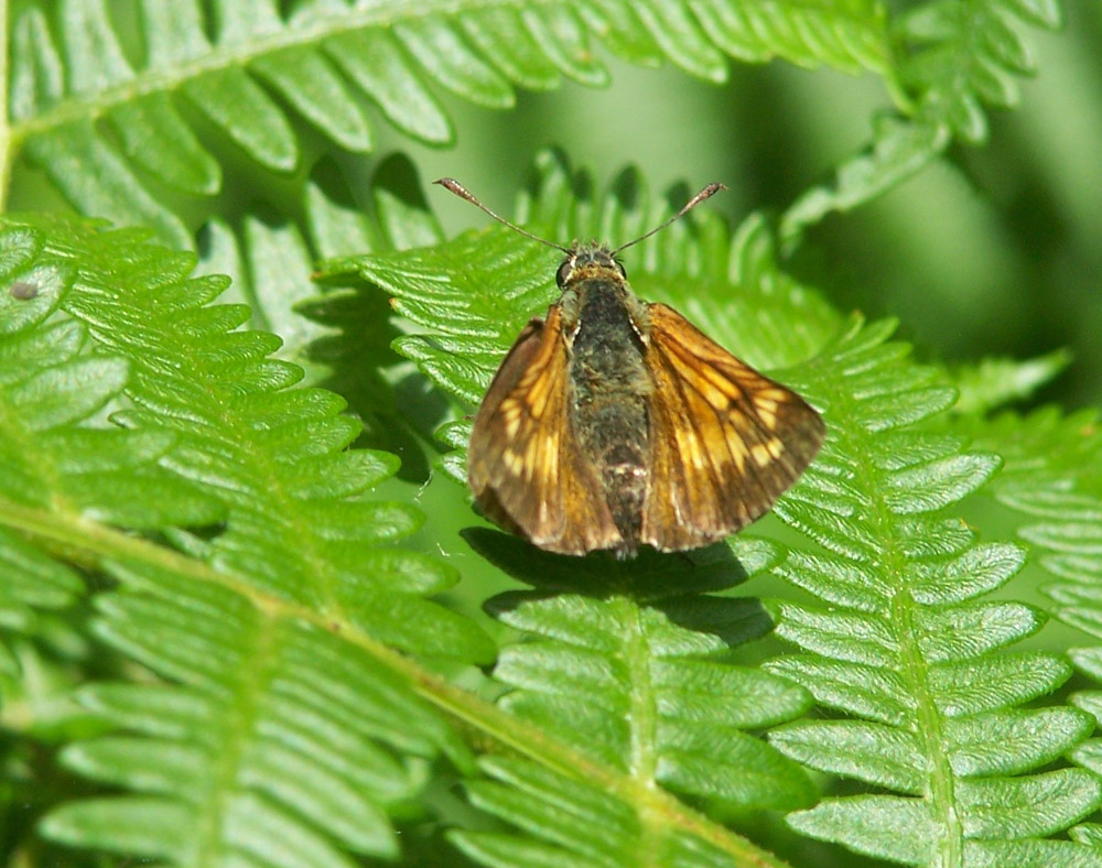 Lastly, I think we have a pair of Large Skippers, Ochlodes faunus? The male on the left, with the diagonal bar of scent scales on the forewing, and the female on the right, without them. I wonder what attraction bracken has for them? I have seen other photos. of these on bracken. To sum up, we had a very good three hours pottering about at Monkwood, and take off our hat to The Worcestershire Wildlife Trust and Butterfly Conservation, the joint owners of Monkwood. However, words are a cheap commodity, and I think I will have to send them a donation. During the time I walked on the major paths & rides, butterflies were to be seennearly all the time – truly vivid proof of the success of this venture. Indeed, at one point on a narrow path, and walking very slowly, I was nevertheless shepherding before me a cloud of at least eight Ringlets – and I think that in the current state of our butterfly fauna, eight butterflies does actually constitute ‘a cloud’ of them!