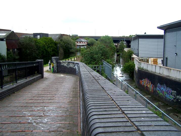 The old ‘Salford Bridge’ is seen here. I drove over it hundreds of times in the early 1960s, well before the austere concrete and steel motorway bestrode it. The Salford Bridge carried the main road (A38) out of Birmingham to the north east: to places like Sutton Coldfield, Lichfield, Tamworth. It is still in use of course, but only as a ‘feeder’ for the motorway, plus local traffic. More on ‘Salford’ later.