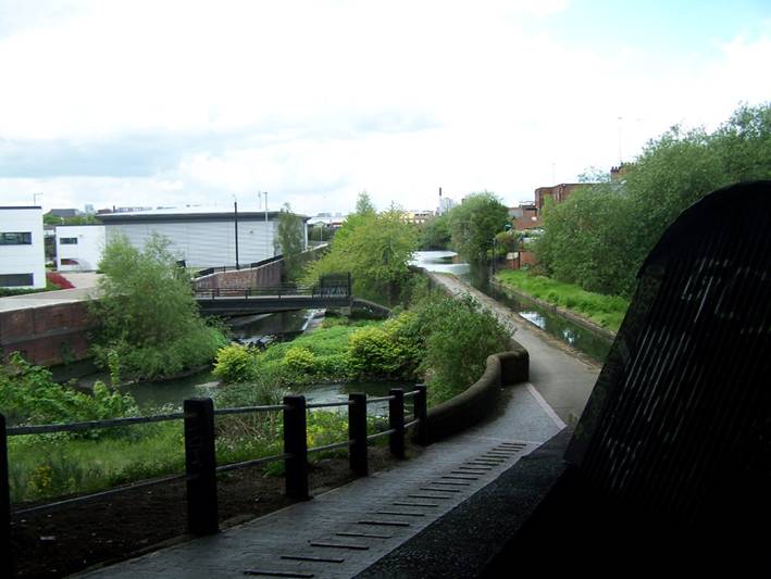Here we are looking back into Birmingham. The canal on the right, the Rea coming in parallel with it,